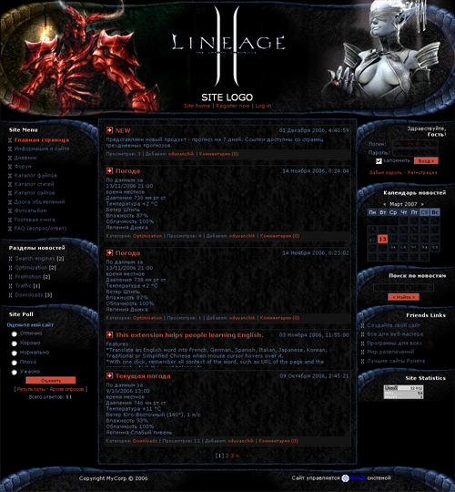 Шаблон на тему игры LineAge II